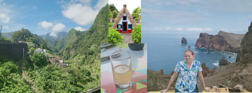 Kolejną atrakcją było zwiedzanie wschodniej części wyspy z Dragon Tour, off-road po częściach niedostępnych dla autokarów. Miałam szczęście i przypadło mi miejsce na samym przodzie. Na pewno ten przejazd dostarczał więcej adrenaliny niż sanki i mnóstwo spektakularnych widoków. Część drogi prowadziła przez prastary las laurowy (laurisilva) z postojem na zobaczenie dawnej maderskiej zabudowy – domki Palheiro w miejscowości Santana. Na koniec wizyta w tradycyjnym poncha % barze 😉